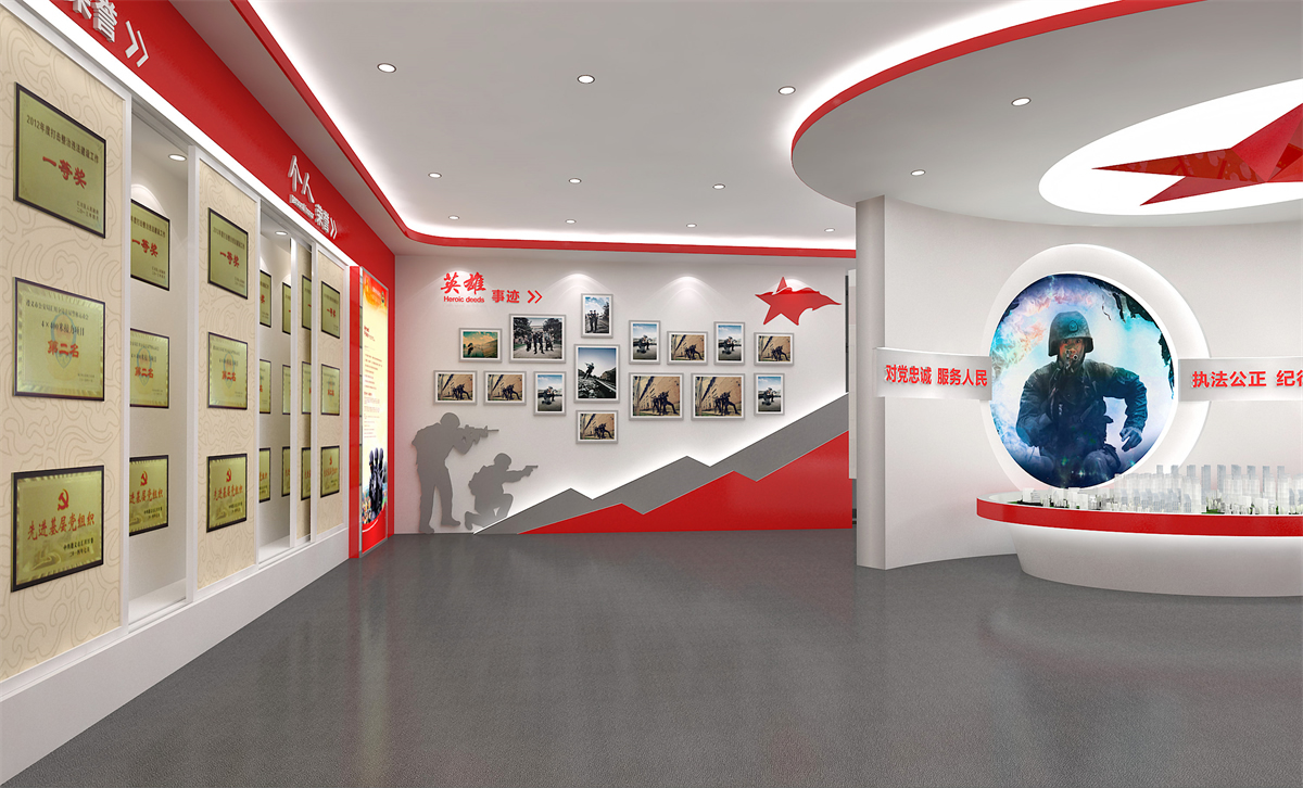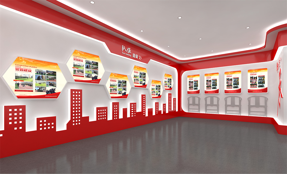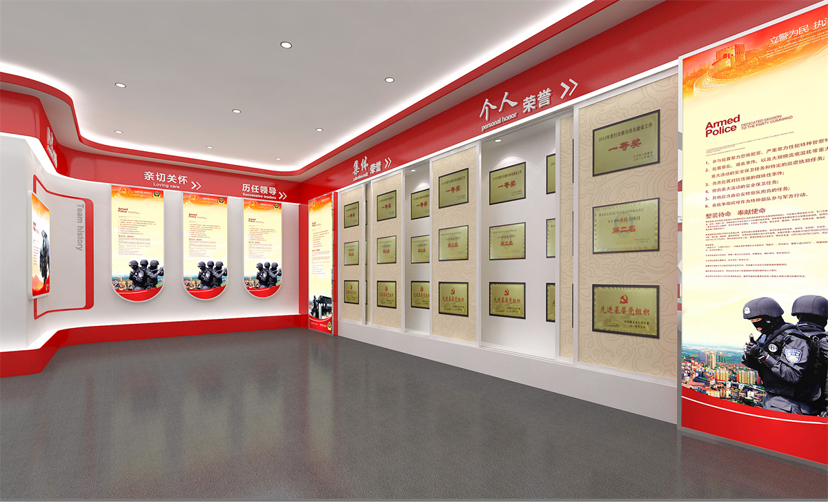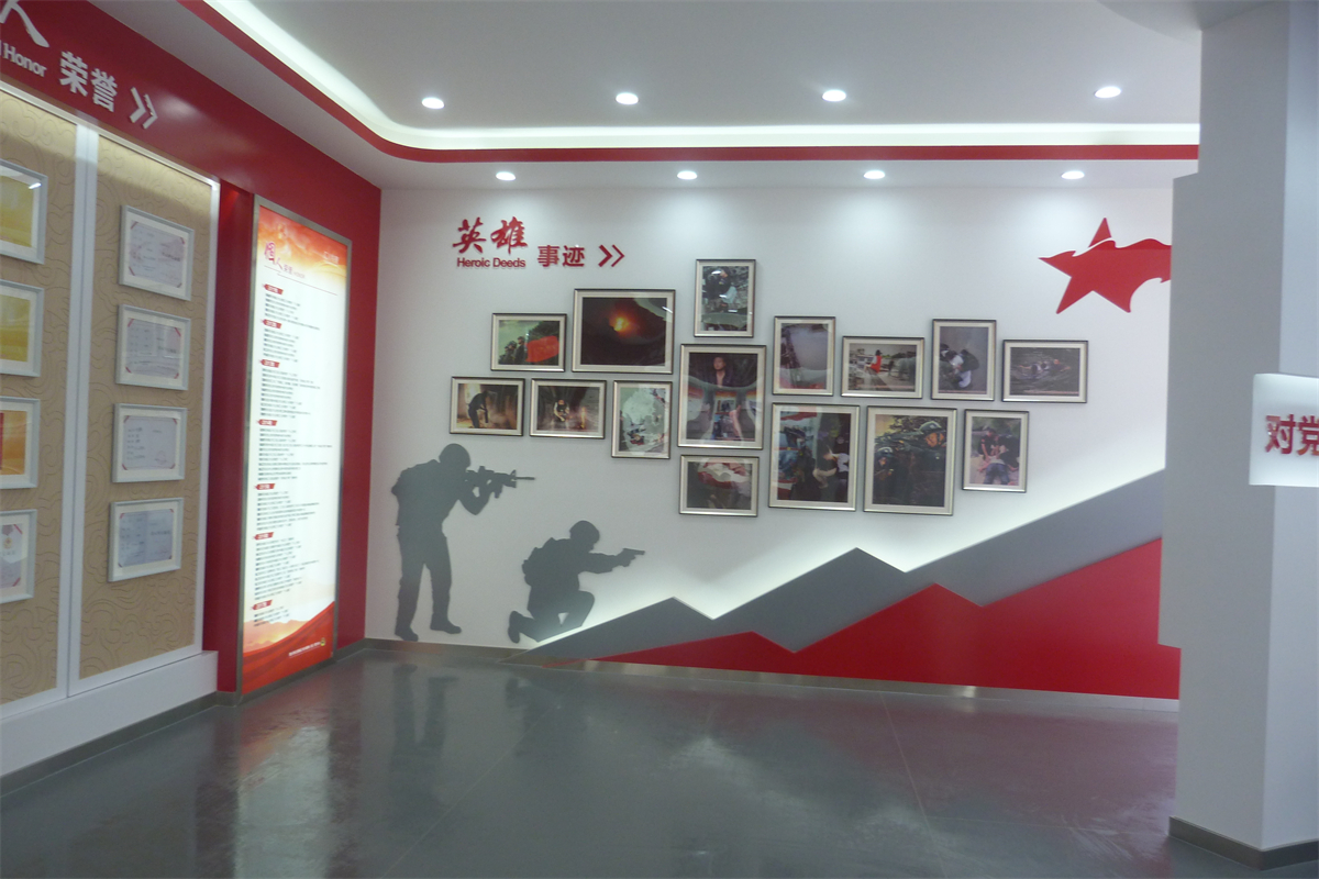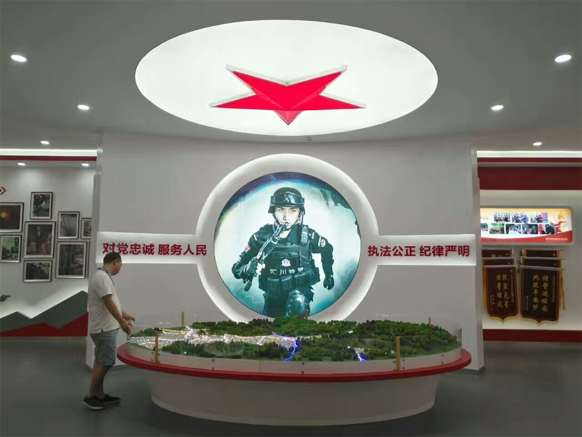 在项目建设上,以“创雷锋式警队,打造一流铁军”为核心精神,通过“横向全面、纵向深入”相结合的形式,整体展现汇川特警的警队文化,体现娄山精神传承至今的当代风采,呈现出特警大队这支国之利刃(楼体外口号标语),传承娄山精神,创雷锋式警队,打造一流铁军(两侧文化墙),守护大美汇川(荣誉陈列室),挥洒青春热血的景象(训练场)。