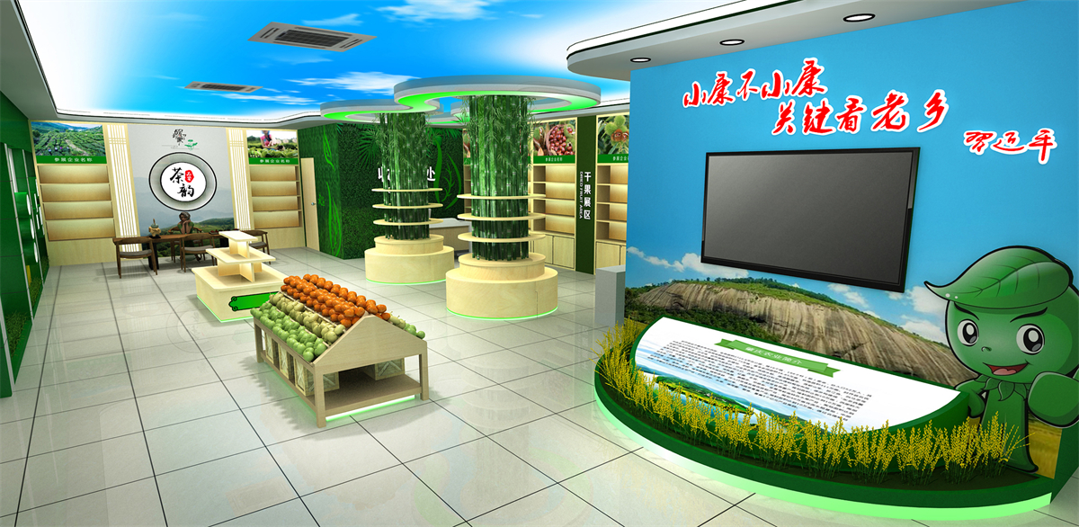 以清新自然的绿色为主色调,融合岭南建筑元素与乡土文化符号,构建了兼具辨识度与亲和力的空间形象。从外观形象塑造到内部功能布局,项目既凸显了肇庆封开的地域特色与产业优势,又为优质扶贫产品搭建了高效流通的桥梁,切实助力巩固拓展脱贫攻坚成果、推动乡村产业振兴,成为展示封开扶贫成效与乡土魅力的重要窗口。