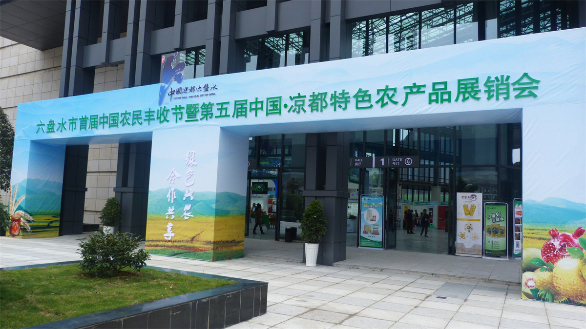 为强化六盘水市农产品品牌培育,推动山地特色现代农业发展, 由贵州省农业委员会、六盘水市人民政府主办,市农委等单位承办的第五届中国凉都特色农产品展销会暨首届中国农民丰收节活动,9月21日至9月23日在六盘水会展中心举办。本次展销共有各县(市、特区、区)以及市内外参展企业、投资商,经销商193家企业参展,展场面积1.1万平方米,200多个展位,包括1号展馆、2号展馆、场外场馆和地下停车场。